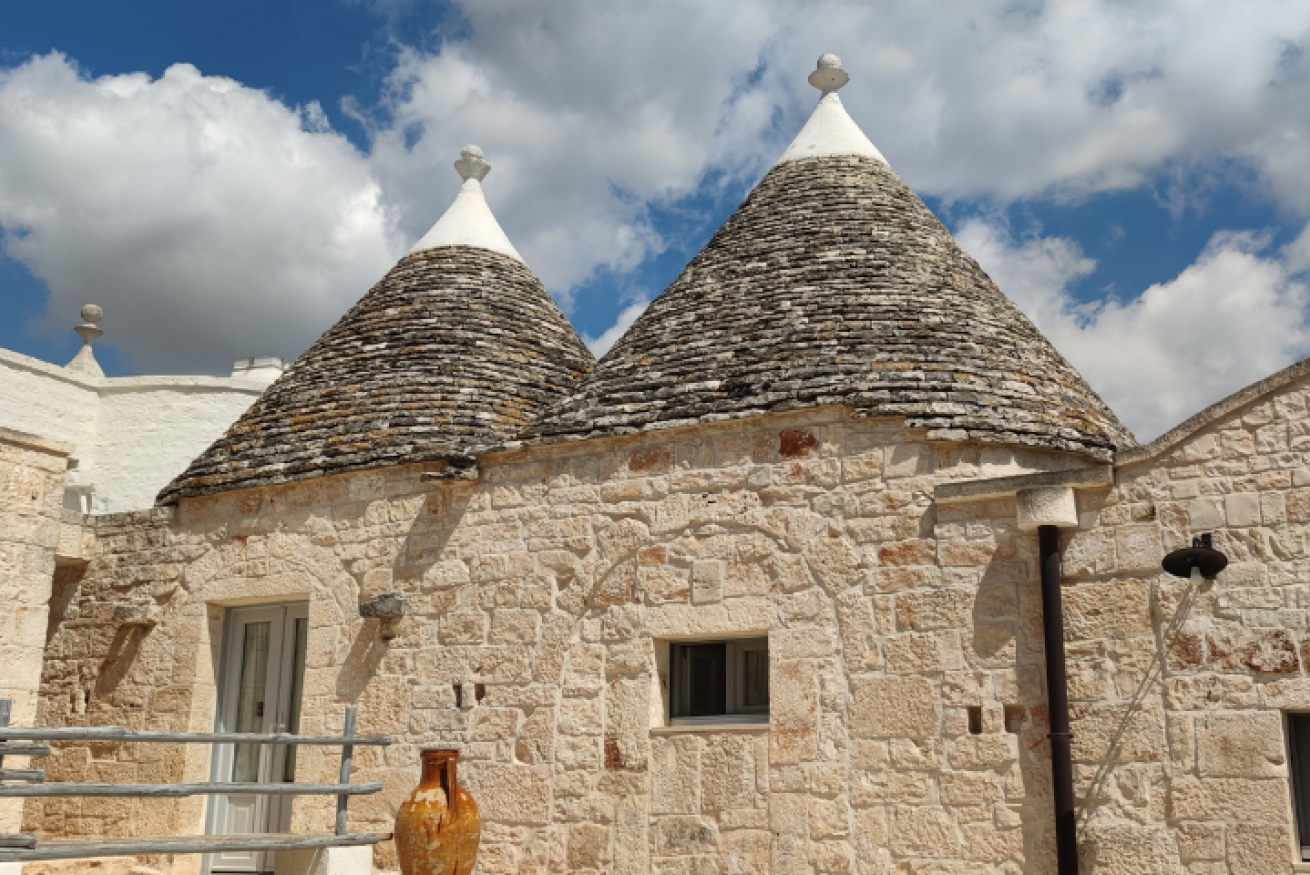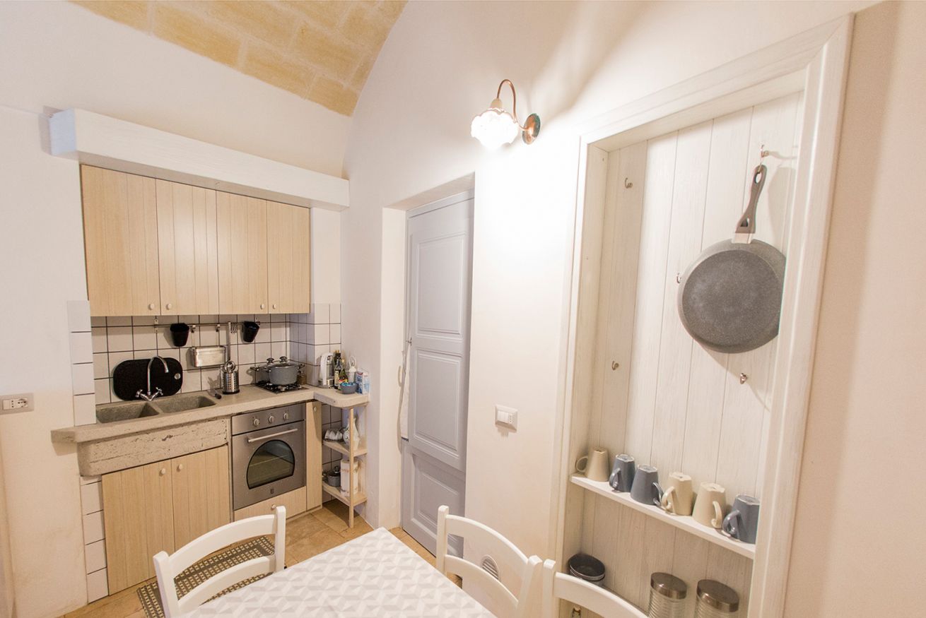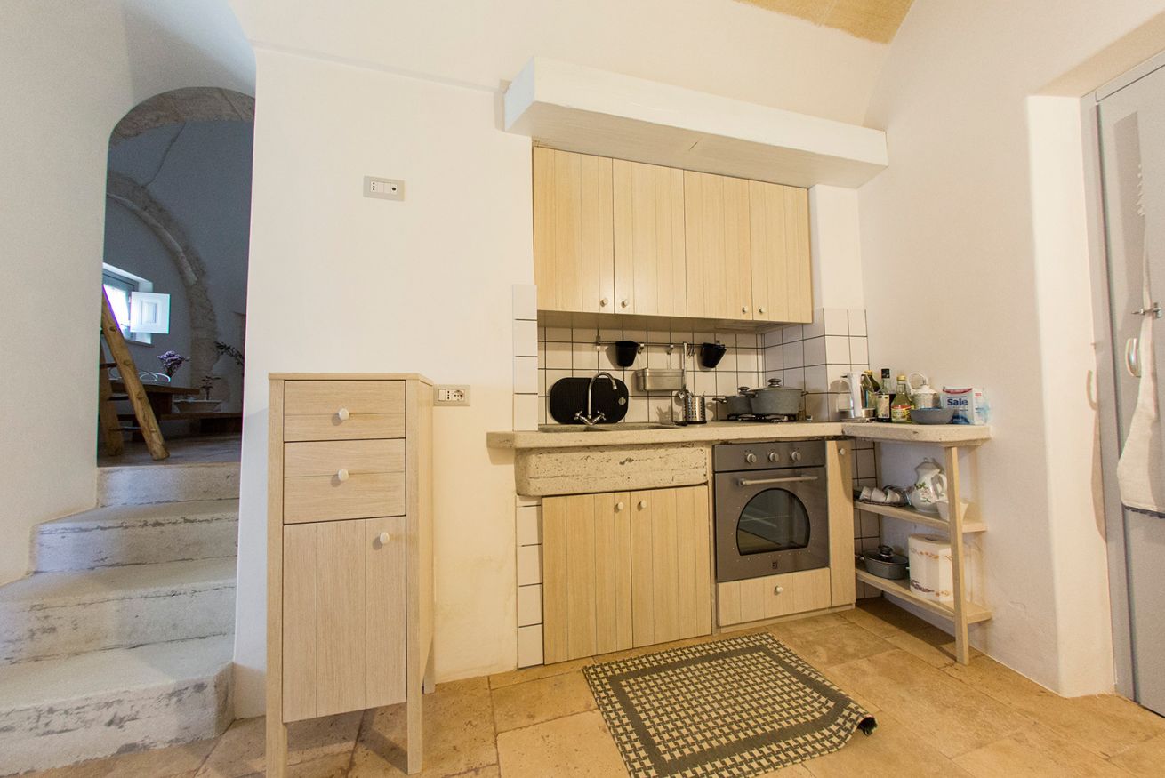 Il trullo di 56mq si compone di una camera da letto matrimoniale, una comoda cucina, un soggiorno con divano letto matrimoniale, un bagno e un atrio esterno attrezzato dal lato opposto rispetto all’entrata, che vi permetterà di godere di maggiore privacy.